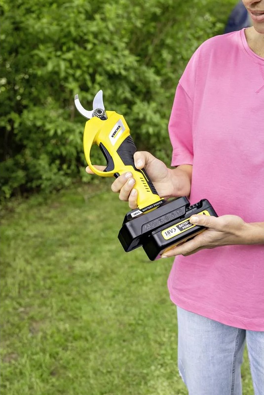 Zařízení na bateriový pohon jsou praktickým pomocníkem při údržbě stromů a keřů ve vaší zahradě. Větve a výhonky s průměrem až 2,5 cm nejsou pro aku nůžky na větve KÄRCHER TLO 2-18 žádný problém.