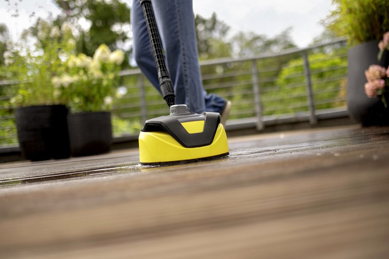 Čistič ploch KÄRCHER T 5 je vhodný pro čištění rovných ploch jako jsou např. terasy, vjezdy nebo vrata.