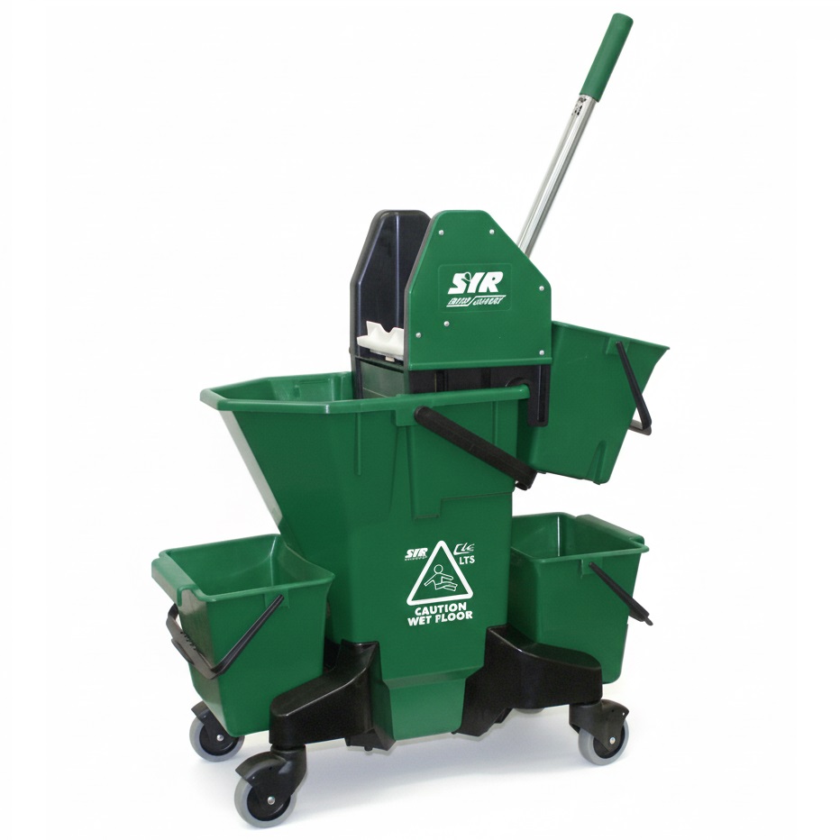 Úklidové vozíky firmy SYR oddělují mop a čistou vodu od špinavé vody a kalu. Těžší částice jsou zachyceny ve spodní třetině kbelíku. Usazeniny se nemohou uvolnit do prostoru nad filtrem. Z toho vyplývá, že se mop dostane pouze do prostoru s čistší vodou v horní části kbelíku.