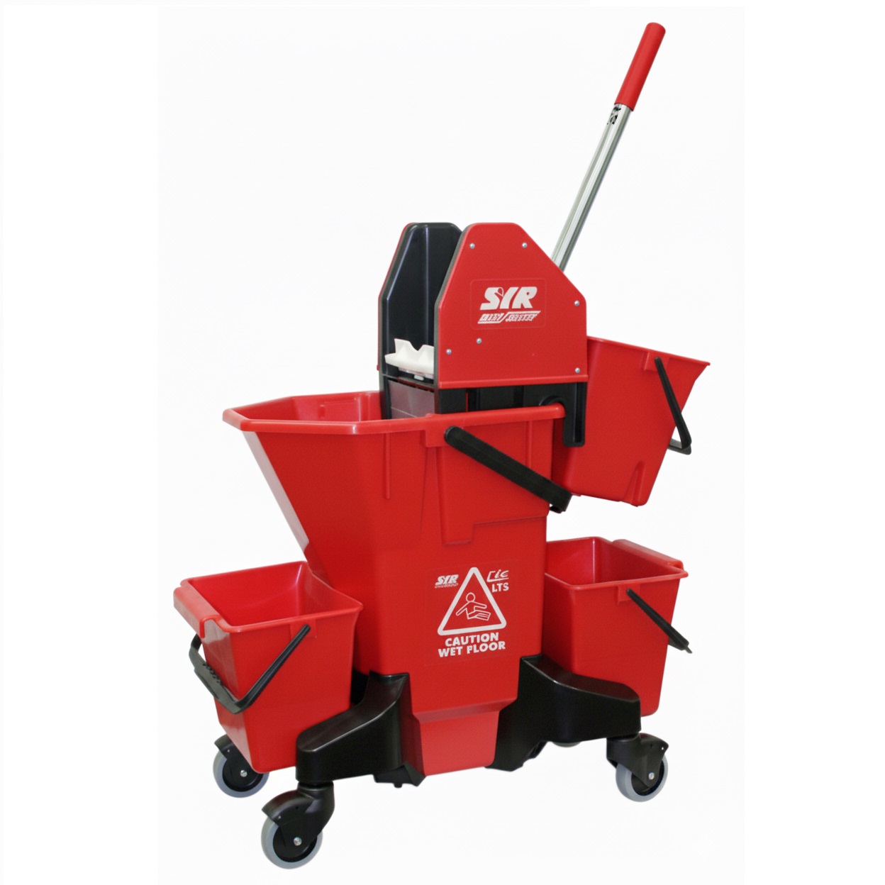 Úklidové vozíky firmy SYR oddělují mop a čistou vodu od špinavé vody a kalu. Těžší částice jsou zachyceny ve spodní třetině kbelíku. Usazeniny se nemohou uvolnit do prostoru nad filtrem. Z toho vyplývá, že se mop dostane pouze do prostoru s čistší vodou v horní části kbelíku.
